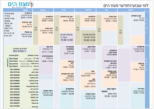 ניתן להצטרף לחוגים הקיימים: יוגה, פילאטיס, מחול, ג'ודו (מתעדכן לפי מערכת השעות המפורסמת)